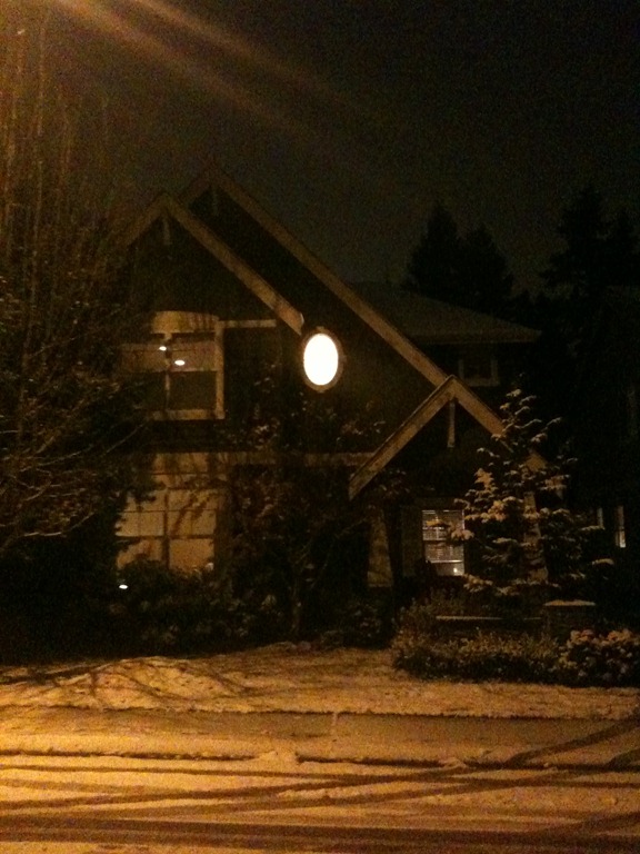 Idag har det varit en dag i snöns tecken. Snön kom redan i morse, den dalade ner i stora flingor, men frågan var hur illa det skulle bli? Snö i nordvästra USA kan bli ett stort problem. Snön är ofta mycket blöt, tung och kommer ofta i samband med kraftig vind. Tung snö och vind är inte en bra kombination när alla elledningar är luftledningar, då blir det ju ofta strömavbrott och jättemörkt och kallt. Än så länge (peppar, peppar…) är allt lugnt hos oss men har hört från flera vänner som har kusligt mörkt hemma. Barnen hoppas på att skolan blir inställd imorgon så för deras skull så får vi hoppas på mer snö.