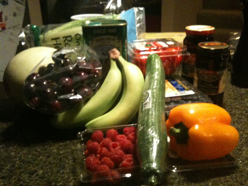 Nu är jag hemma med maten klar. Det såg lite mörkt ut ett tag. När jag handlar mat blir jag ibland lite tom i huvudet och aningen rådvill. Idag kom jag hem med mest bär och grönsaker, en ny olivolja, svarta oliver samt tunna kycklingfileer. Humm, ungefär samma varje dag. Oliverna intas med dryck före maten…
