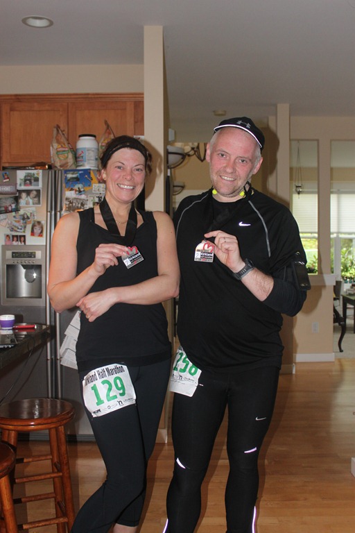 Något droppade i det omedvetna hela natten och jag förstod när jag vaknade strax före fem att det var så enkelt att det hade regnat hela natten. Mörkt, blött och kallt, härligt väder för en springtur. Brjann och jag hämtade ut våra kuvert vid 6-tiden och gick sedan tillbaka till bilen. Attans vad vi är orutinerade. Jacka på, jacka av, tröja på, tröja av, nummerlapp på, nummerlapp av, knyta skor, dricka en klunk, jacka på, jacka av… Hur sjutton klär man sig när det är 5 grader varmt och duggregn? Vi borde ju veta vid det här laget eftersom det är det normala vädret här 295 dagar per år. Vi försökte vara lite avslappnade och knallade runt bland alla sponsorer och jag fick till och med en lycka till kram av min kiropraktor. Det var förvånansvärt många som skulle springa. Har folk inget bättre för sig kl 7 en söndagmorgon?Tillslut gick startsignalen och vi knatade iväg och hamnade bakom alldeles för många människor och vi tappade massor av tid första två milen. Vi tog oss runt och gjorde det med stil. Nätta steg, Uggla, BEP, Springsteen och U2 i öronen och ett leende på läpparna. Vi kom i mål, sida vid sida men tyvärr inte under 2 timmar. Min klocka visade 2.02 när jag sprang över mållinjen. Helt OK men det kommer att gå fortare nästa gång. Det känns ganska skönt så här efteråt, faktiskt!