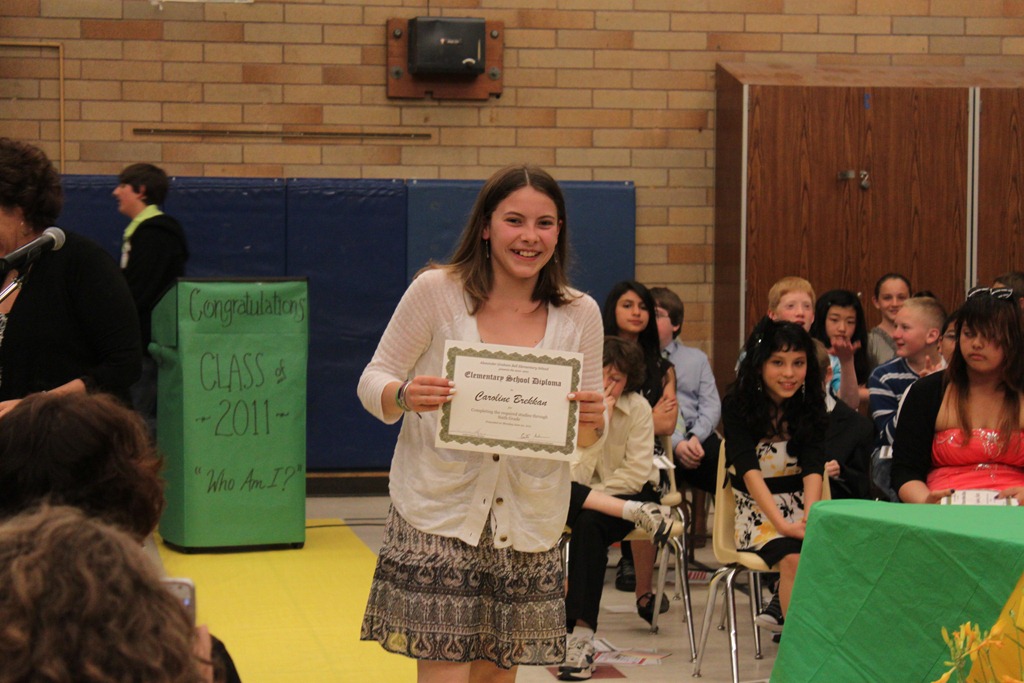 Idag var det dags för en efterlängtad graduation. Caroline slutade idag officiellt i 6an och flyttar nu upp till alla stora ungdomar i junior high till hösten. Som vanligt hade Brjann och jag stor anledning att vara stolta föräldrar. Caroline höll ett långt tal som handlade om ledarskap och hur man är en god förebild. Hon har haft en fantastisk fröken i sexan så vi får ge stor credit till henne. Det har på alla sätt varit ett bra år för Caroline. Gympasalen var sprängfylld av föräldrar och släktingar som hade laddat med näsdukar och kameror. Man skulle kunna trott att det var Oscars eller Grammis, fotograferna var många och intensiva. Det är många barn med asiatiskt ursprung och deras föräldrar var liksom extra flitiga med kamerorna. Det gäller att ha vassa armbågar när det gäller. Nu är det bara hopplockning och storsamling kvar i skolan och på onsdag är sista skoldagen. Äntligen!