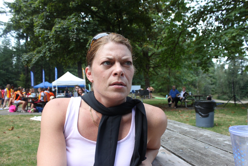 Vi andra vi väntade och väntade… Vi åt en macka, drack lite vatten, spelade ett parti kort…Vi fick rapporter att det var en tuff bana med mycket backar… ojoj… jag vet ju att det har slarvats med backlöpen…