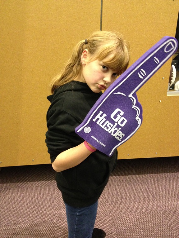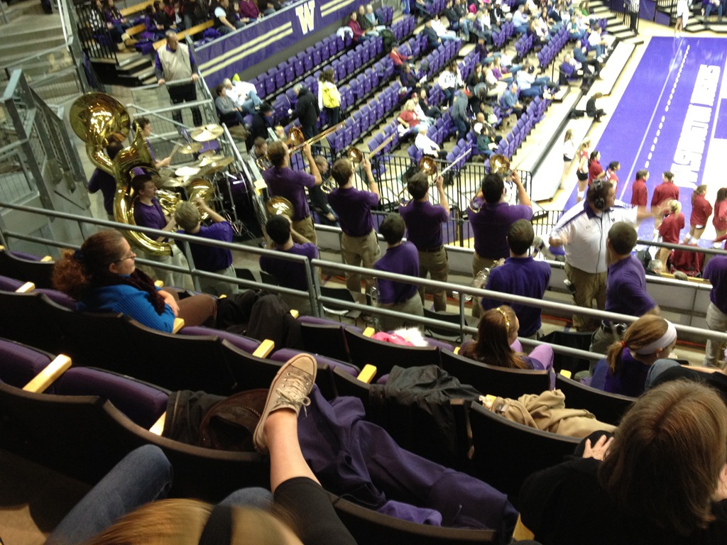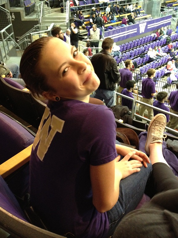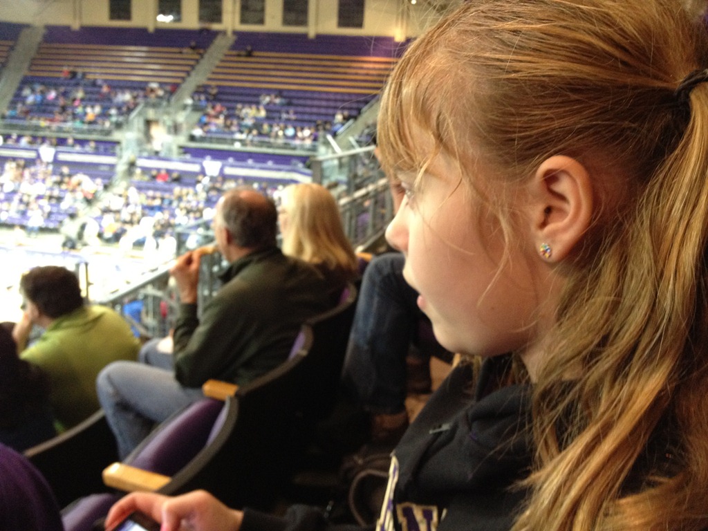 Igår hade vi en toppenkväll. Vi körde i störtregn mot University of Washington för att heja på UW volleybolldamerna som spelade match mot Cougers, Washington State. Och javisst, självklart vann de lila!! Go HUSKIES! Vi är bitna. Det känns som om en favorit i repris tidigt 90-tal. Uppsalas damer i Fyrishov, Uppsala, SM-Guld, Sveriges Radio och Sveriges Television på plats. Nu är det ungdomar födda tidigt 90-tal som spelar på Alaska Airlines Stadium, Seattle. Dödligt allvar och stipendium, amerikas framtidshopp och vi äter popcorn på läktarplats ovanför bandet. Maskoten dansar i pausen, cheerleders som skuttar och livet är läckert. Det är så här det ska vara. Vi vill också spela därnere, på trägolvet om några år. Nu gäller det att träna hårt. Johanna och kompisen (och 6e familjemedlemmen) suktar och önskar. Det är hit de ska!