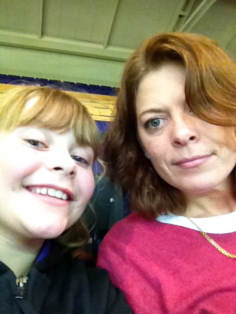 Lyckliga vi! Vi satte oss precis ovanför Huskies eget band och fick underhållning de luxe.