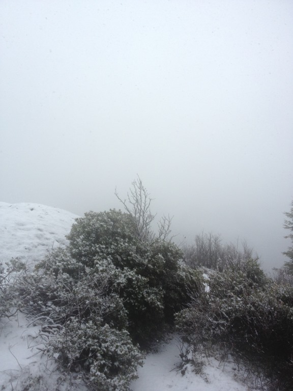 En dag med mycket väder har det varit. Regn, lite sol, lite grått och så helt plötsligt snö i mängder uppe på en bergstopp. En bra dag. Idag var jag definitivt uppe före tuppen. Mörkret låg kvar länge över skogen i morse och regnet hängde i luften. Det var knappt så att pannlamporna lyste en meter framför oss, dimman låg nästan ända nere mot marken. Men inte så tokigt ändå. Frisk luft och rosiga kinder. Och så en halvsju trip till Starbucks på vägen hem.