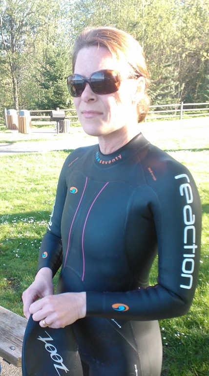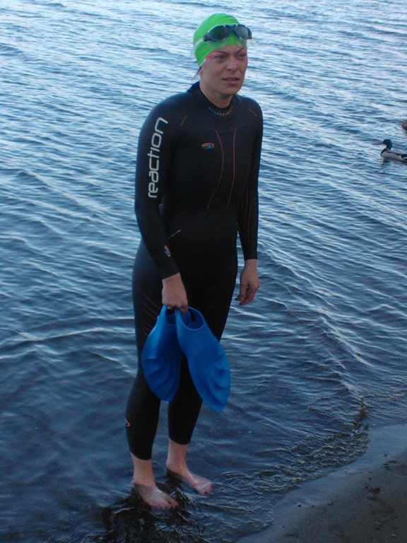 Idag sken solen klargul och himlen var blå. Under dagen hade Brjann bestämt med två andra triathleter att det var dags att testa sjövattnet i Redmond. Kallt och isigt men varför inte? Jag följde med och invigde våtdräkten. Och vad kan jag säga, inte var det varmt i alla fall. Njutbart? Nej, inte det minsta. Det var kallt och fötterna försvann på något sätt redan efter andra steget ut i vattnet. 9 grader varmt och lite vind. Härliga tider. Vi var väl i vattnet 10-15 minuter och det kändes som det räckte. Jag var den som simmade minst av alla men kan ändå säga att det var en lyckad tur. Våtdräkten satt fint, passade som handsken. Nu är det bara att vänta in några plusgrader sen blir det simma av.