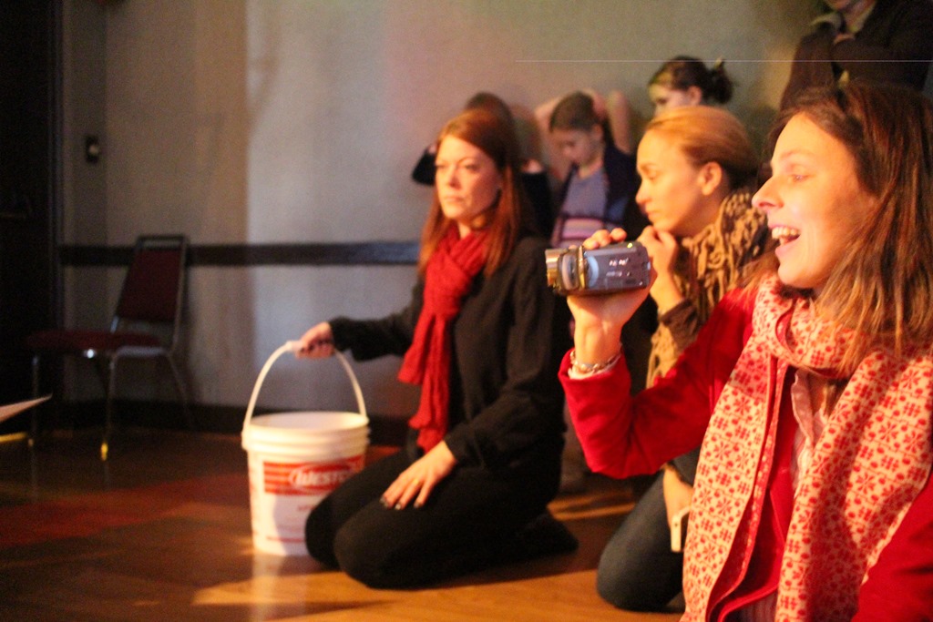 Jag, något stressad, sittande med vattenhinken om det skulle ta eld i hår eller särkar.