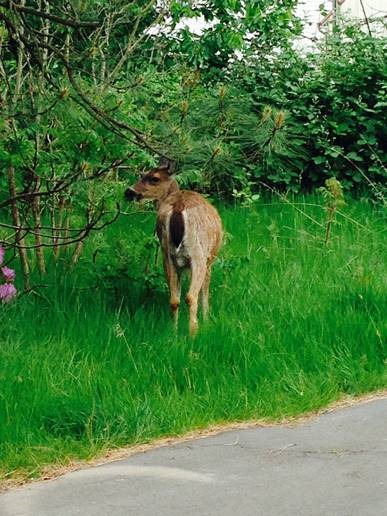 Igår när jag var hemma på förmiddagen såg jag någon som tittade på mig genom nätdörren i köket. Där stod Rolle med huvudet på sned och undrade varför det inte fanns några växer kvar att äta. Jag hör mig själv prata med ett rådjur. Roland, nu får det vara nog. Gå iväg! Du har gått över gränsen. Fy Roland! Fy! Och så gick han sakta iväg och hängde lite med huvudet. Och idag har han inte varit här och jag känner mig lite ensam. Jag kanske var lite för hård?
