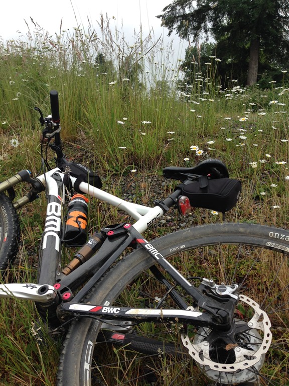 Idag cyklade jag ett par timmar i regnet. Jag hoppade upp och for iväg mot närmsta grusväg. På två timmar träffade jag bara två personer och en lös hund. Jag satt i gräset och drack vatten och funderade på var alla människor var en lördag förmiddag i förorten. Tomt och tyst nästan mitt i stan. Så fint kan man ha det.