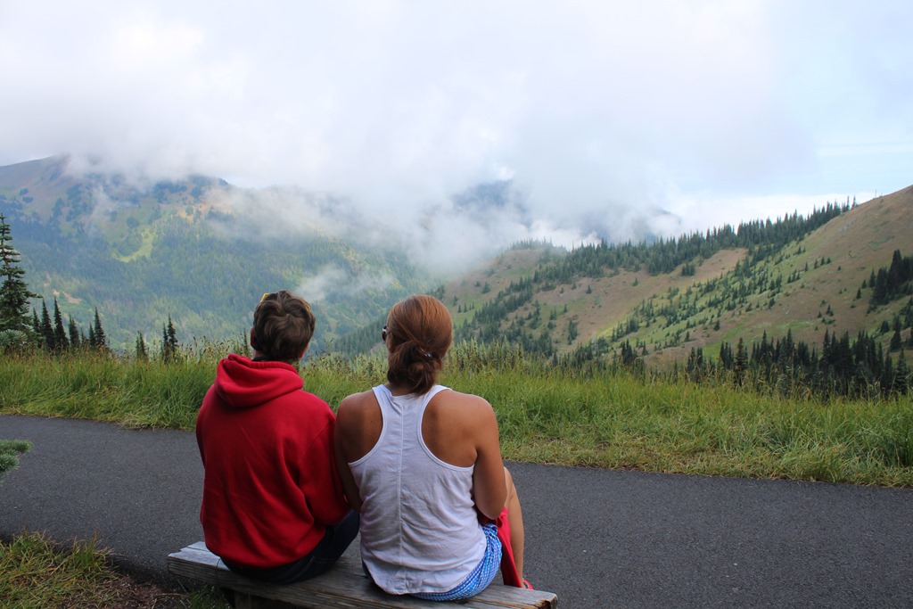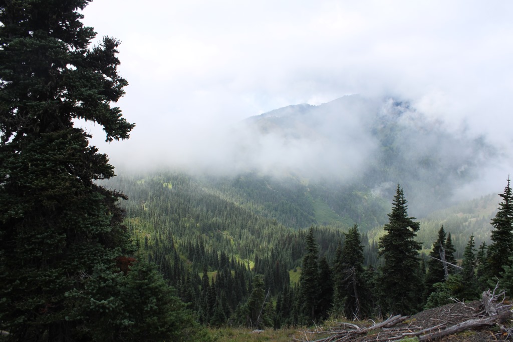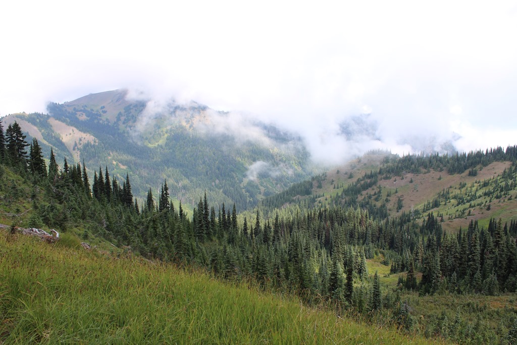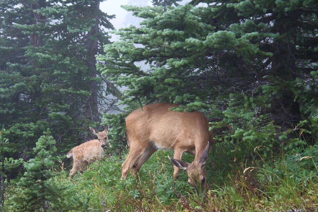 Nu bar det av upp mot Hurricane Ridge, Olympic National Park. En lång bilresa uppför. Egentligen kändes det som lite fusk att köra bil men så funkade det här. En lång färd på serpentinvägar och sedn öppnade sig bergen men gröna ängar, blommor och vi började raskt sjunga fina bitar ur Sound of music och kände oss som von Trapps. Dimman låg tät, utsikten var mjölkvit med inslag av berg. Man skulle kunna se hela vägen till Kanada och hela vägen till andra sidan Washington och lite till. Vi tog en promenad upp till toppen och höll på att bli påsprungna av en grupp rådjur.
