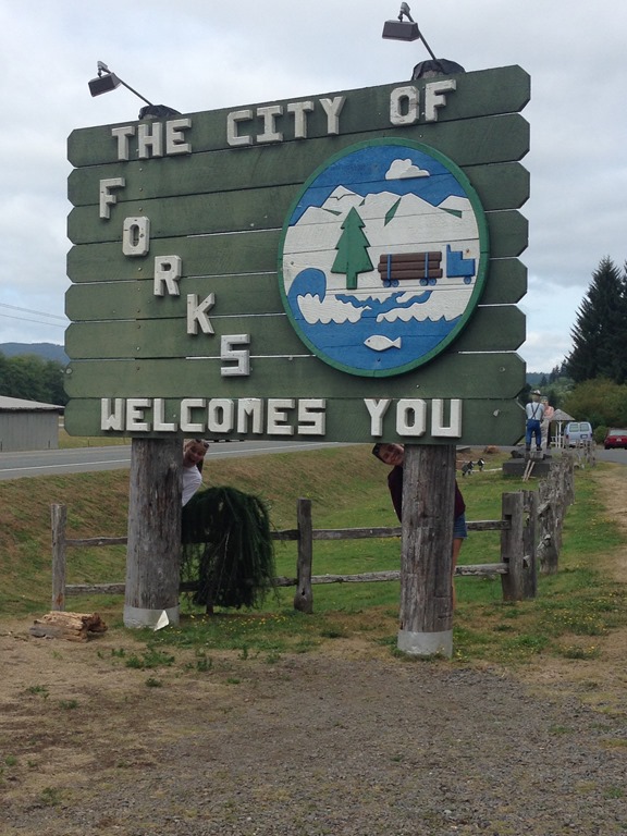Efter några timmar av toppnatur drog vi vidare förbi turkosa sjöar, tät skog, små samhällen och smala vägar. Vi hamnade till slut i Forks där det fortfarande är Twilight feber. Vi passerade Bellas hus och bil. Handlade där hon jobbade. Spanade efter varulvar utan tröjor och glänsande vampyrer. Forks var inte direkt någon metropol men värt ett besök för den som gillar Twilight serien. Jag har aldrig sett så många gamla truckar, flanellskjortor och rassliga hus på en och samma gång.