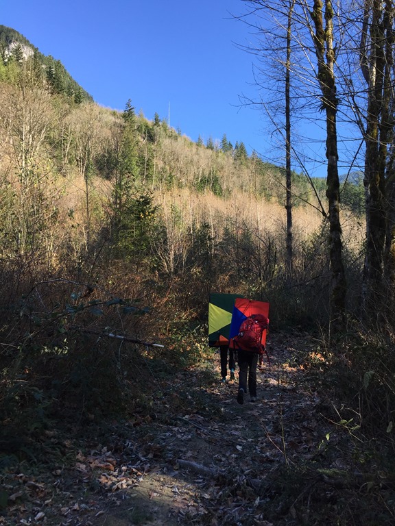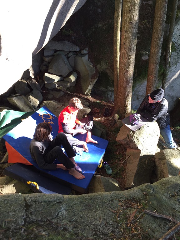 Klättringen fortsätter framåt och uppåt. I helgen tog vi en tur till Gold Bar och hasade oss uppför med stora crashpads på ryggarna, termosar med kaffe och nyponsoppa, smörgåsar, bullar och bananer nerpackade i ryggsäckar. Vi hade en riktigt fin dag med några minusgrader och klarblå himmel. Vi kom inte hem förrän solen hade gått ner. Det ligger forftarande ett stort lock över hela livet och klättringen efter att Ross dog i september. Förra turen till Gold Bar var med Ross och det är klart att vi tänkte extra mycket på honom när solen sken och stenarna glänste av kyla. Så är det och så kommer det att förtsätta vara. Nu gäller det bara att minnas allt bra utan att gråta en skvätt, vi kommer dit så småningom. Som med allt annat i livet så är vissa dagar bra och andra ganska dåliga. Hjärtat har fått sig en ordentlig törn.
